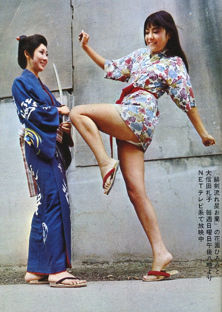 sortait de prison et formait une bande avec d'anciennes détenues, autrefois rivales désormais à la vie à la mort. Chez les soeurs de sang de Reiko Oshida primait l'amitié chevaleresque et c'est toujours en voyant l'une des leurs agoniser dans leurs bras après avoir été massacrée par les yakuzas, qu'elles prenaient les armes. Dans Tokyo Drifters, la traversée de Kabukicho par les loubardes en manteaux rouges pour un ultime baroud d'honneur reste d'un romantisme absolu. L’excitation que provoquaient ses films était toute simple : voir une bande de filles à la dernière mode de Shinjuku, découper au sabre des gangsters, incarnations grotesques du machisme.