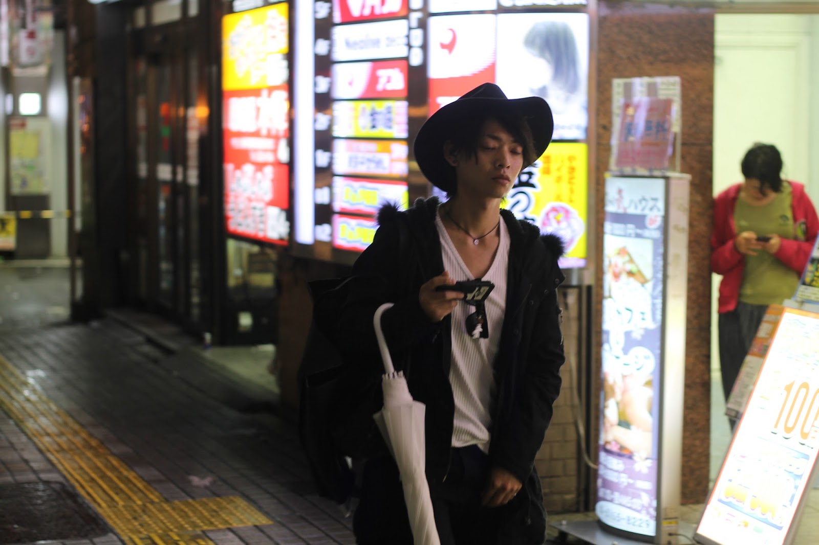 A l’origine, Kabukicho a été construit après-guerre sur un quartier de Shinjuku rasé par les bombardements. Il devait accueillir, un grand théâtre Kabuki qui ne fut jamais construit. Mais le nom est resté, et au fond il lui va à merveille, comme si l’esprit sulfureux du vieux kabuki, la pratique du travestissement et la prostitution des jeunes actrices et acteurs avaient implicitement décidé de l’orientation du quartier. Lorsque je me rends à Golden Gai, j’aime toujours le traverser pour en sentir l’électricité presque palpable, au sens propre d’abord puisque les néons des boîtes en font sans doute l’une des plus grandes dépenses de Tokyo. J’aime regarder les hosts, ces jeunes garçons travaillant dans les clubs pour femmes esseulés, mince et habillés de noir, les cheveux oranges ébouriffés comme des chats de gouttières. Je suis toujours intrigué par la façon dont les rabatteurs sénégalais s’arrêtent à la lisière de Golden Gai, devant le bar karaoké philippin Champion, comme si une barrière magnétique de science-fiction séparait les deux mondes. Ce soir-là, la veille de mon retour en France, j’ai voulu emporter avec moi les sourires de Kabukicho.